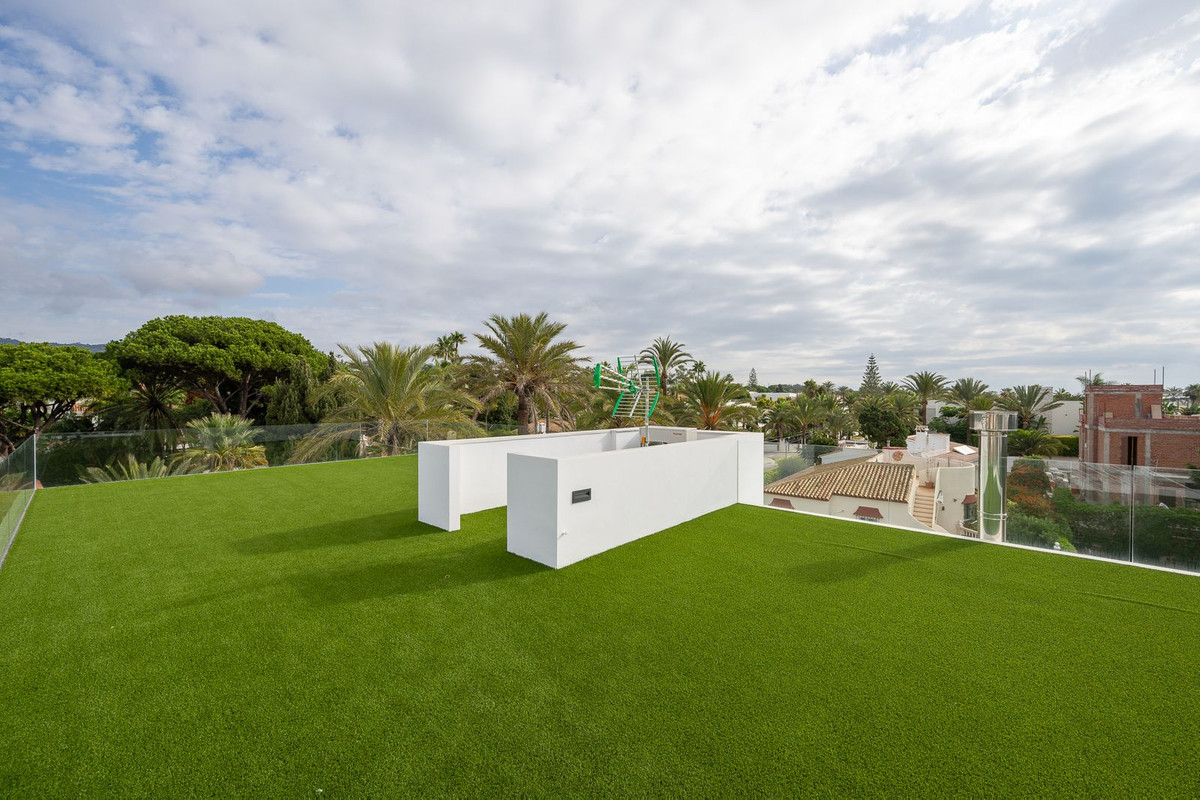 Outside, a beautifully landscaped garden surrounds a 46-square-meter pool, offering an ideal space for outdoor living. Constructed with the highest standards and quality materials, this villa represents a unique opportunity for those seeking a spacious, modern residence mere steps from the beach in one of Marbella’s most desirable locations.