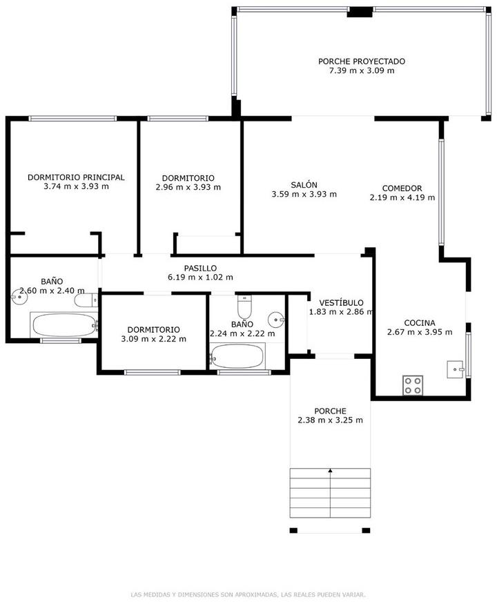 At entrance level: hall with toilet, fully equipped kitchen, spacious living room and conservatory with wooden ceiling, 3 bedrooms, 2 bathrooms.